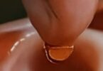 Put a small drop of honey (about 1/8 of a teaspoon) on your thumb.
