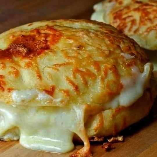 Carefully flip the sandwich using a spatula.