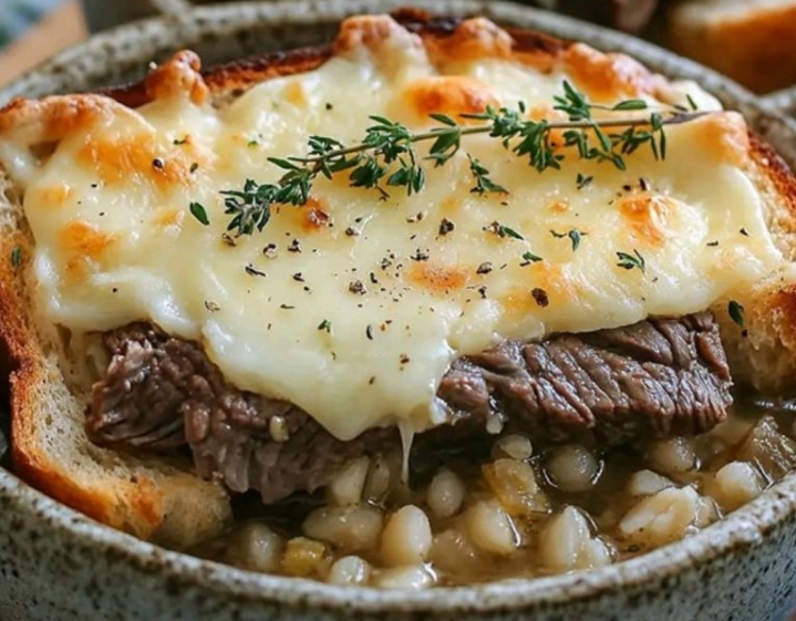 Ladle the soup into bowls, place a cheesy bread slice on top, and sprinkle with fresh parsley. Serve hot and savor every spoonful!
