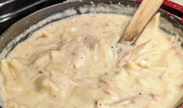 heavy cream and corn starch to thicken the chicken stock after dumplings are cooked