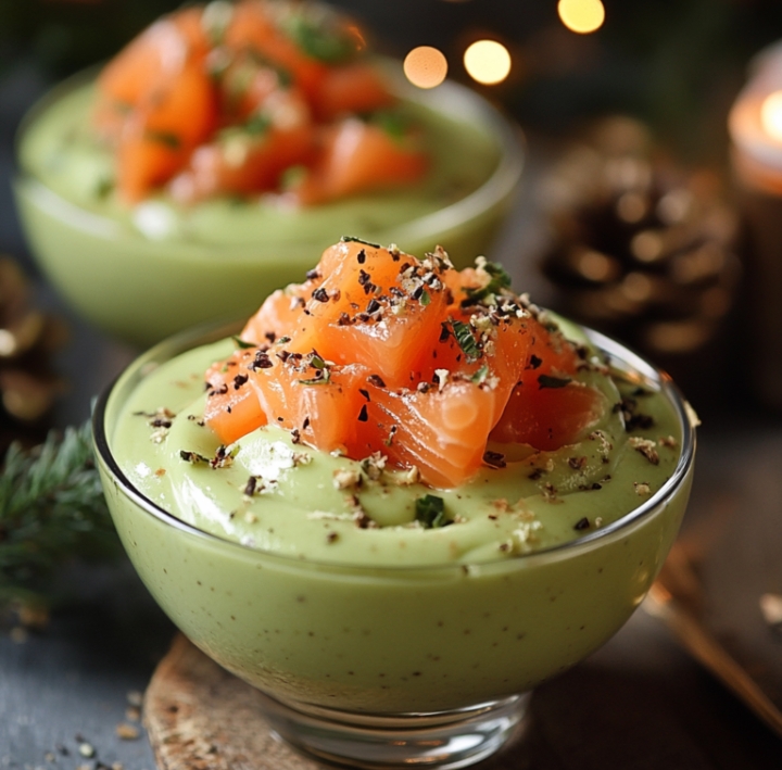 Celebrate the holidays with a dish that’s as elegant as it is delicious—Christmas Mousse with Avocado and Smoked Salmon. This creamy and vibrant appetizer combines the velvety texture of ripe avocados with the rich, smoky flavor of salmon, creating a delightful balance of freshness and indulgence. Perfectly suited for festive gatherings, this mousse not only adds a sophisticated touch to your holiday table but is also quick and simple to prepare. Whether served as an appetizer or part of a luxurious brunch spread, this dish is sure to impress your guests and elevate your holiday menu.