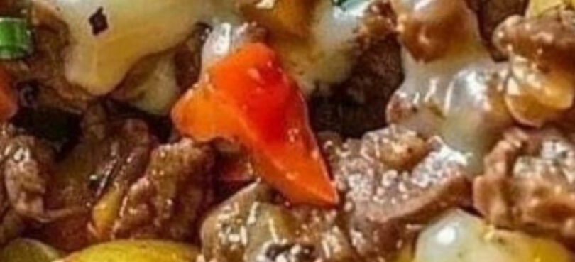 This Crockpot Cheesesteak Potato Casserole brings together tender steak, golden potatoes, and gooey cheese for a hearty, no-fuss meal. Inspired by the classic Philly cheesesteak, this recipe takes all the beloved flavors and transforms them into a casserole perfect for family dinners or cozy gatherings. Let your slow cooker do the work while you enjoy the delicious aroma wafting through your home.Ingredients (Serves 6-8)For the Base:2 pounds (900g) russet potatoes, peeled and diced into 1-inch cubes1 ½ pounds (680g) thinly sliced steak (sirloin, ribeye, or flank steak)1 large green bell pepper, diced1 large onion, diced8 ounces (225g) mushrooms, sliced (optional)2 teaspoons garlic powder2 teaspoons onion powder1 teaspoon smoked paprikaSalt and black pepper, to tasteFor the Sauce:1 cup (240ml) beef broth1 cup (240ml) heavy cream2 tablespoons Worcestershire sauce2 tablespoons cornstarch or flour (to thicken)For the Topping:2 cups (200g) shredded provolone or mozzarella cheese1 cup (100g) shredded cheddar cheeseFresh parsley, chopped, for garnish