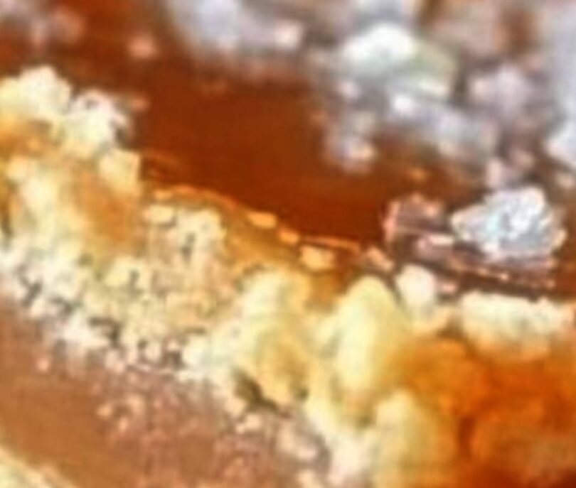Pour caramel mixture over the crust in the baking dish.