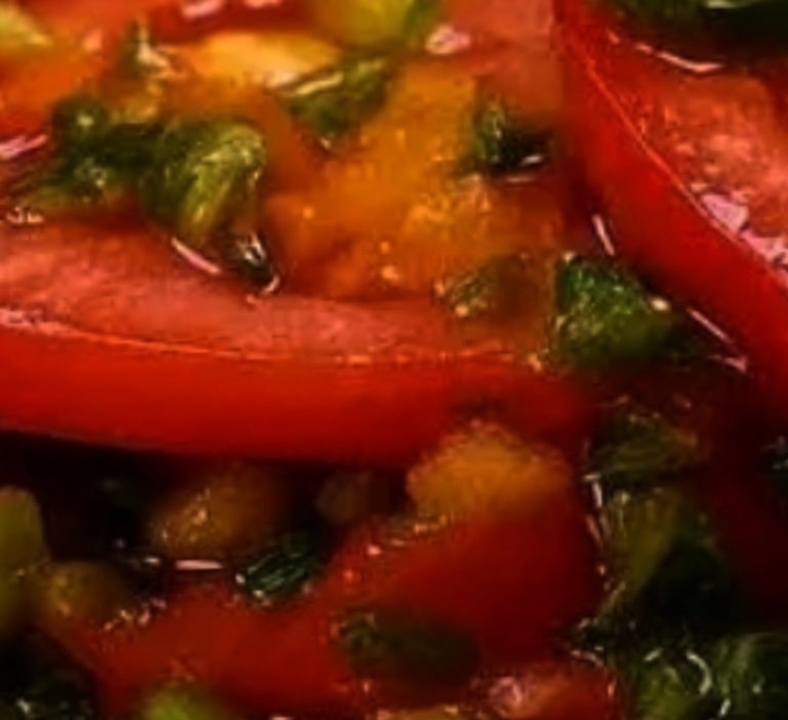 I promised you unforgettable, and here’s proof! This salad is as stunning as it is simple — a swirl of juicy tomatoes, crisp peppers, and herbs tossed in a tangy-sweet dressing that wakes up every bite. Perfect for potlucks, picnics, or weeknight dinners, it’s one of those dishes you’ll find yourself making again and again.