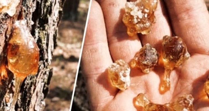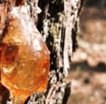 Natural resin oozing from the bark of a tree—a golden, amber-like substance formed when the tree protects itself from injury, pests, or environmental stress. This sticky, translucent material has been valued for thousands of years in medicine, cosmetics, incense, and even food preservation.