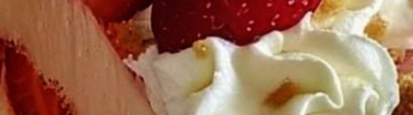 Using the leftover whipped cream, decorate the cake’s top. Add some fresh strawberries as a garnish.