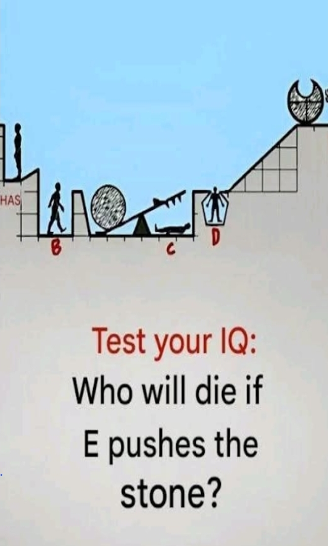 Today’s puzzle requires a thorough analysis and a basic understanding of physics. However, even if you are not an expert in physics, a good observational skill might be enough to solve the puzzle. The puzzle image shows five people, labeled A through E. E is about to push a rock down a slope. The rock is spaced far enough apart for a head to fit inside.