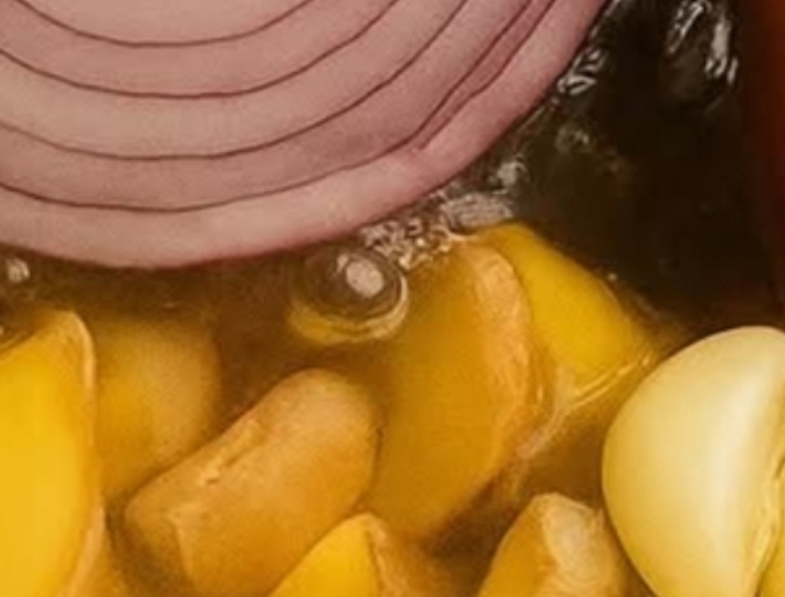 Ingredients:1 medium onion (sliced)1 lemon (sliced with peel)4–5 cloves of garlic1 piece of fresh ginger (about 2 inches, sliced)1 stick of cinnamon5–6 cloves3 cups of water